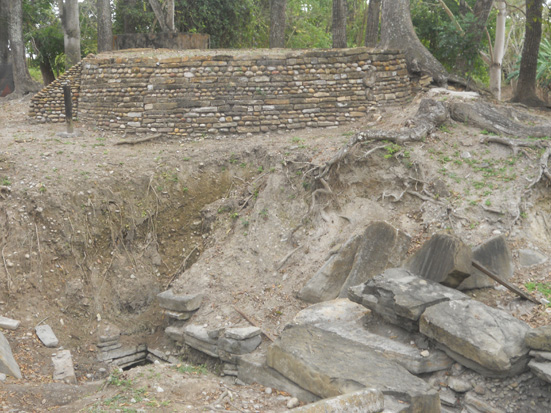 Zona conocida como ‘La noria’ dentro del sitio arqueológico de Tamtoc, en la foto vestigios del taller de labrado en piedra.